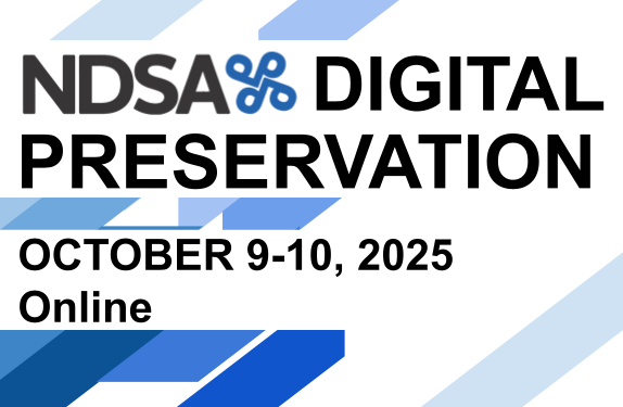 The National Digital Stewardship Alliance (NDSA) will host the 2025 Digital Preservation conference, or DigiPress, virtually on October 9–10. The conference program features peer-reviewed sessions on a wide range of issues related to digital preservation, including tracks on web archiving, inventory and infrastructure, community preservation organizations, challenges to digital preservation, and more.